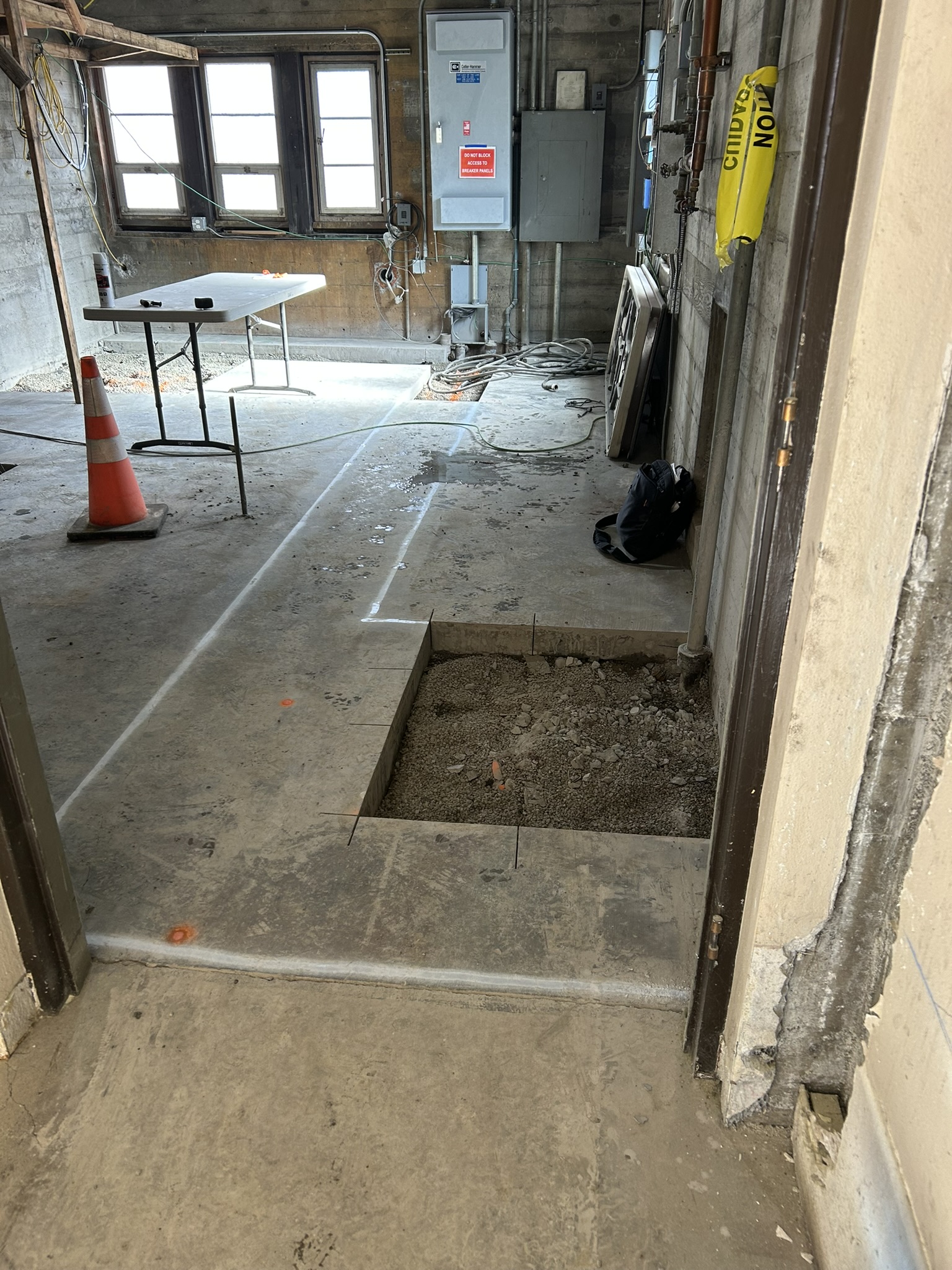 This is the old “boiler room” being prepared for new electrical and plumbing connections.