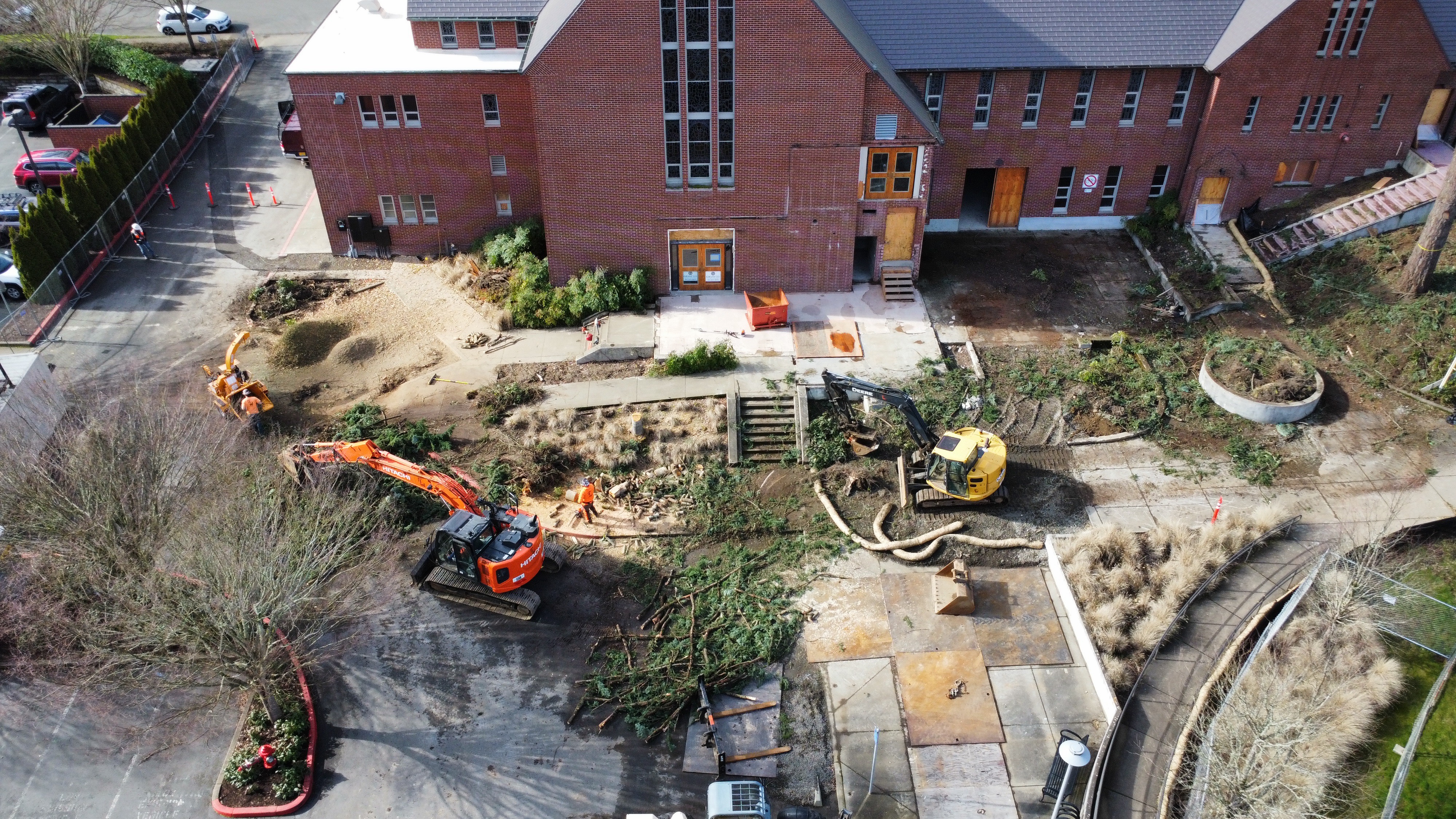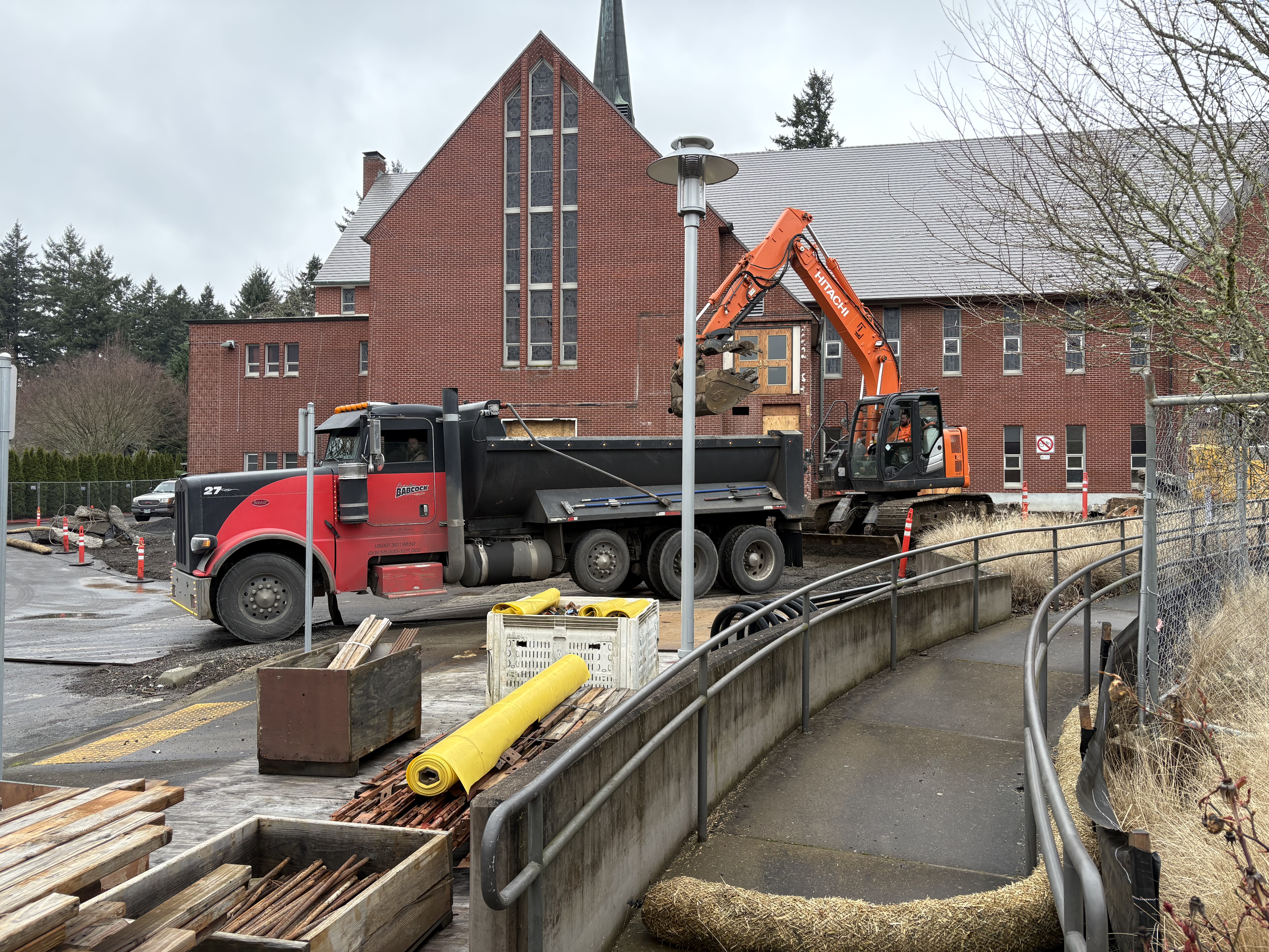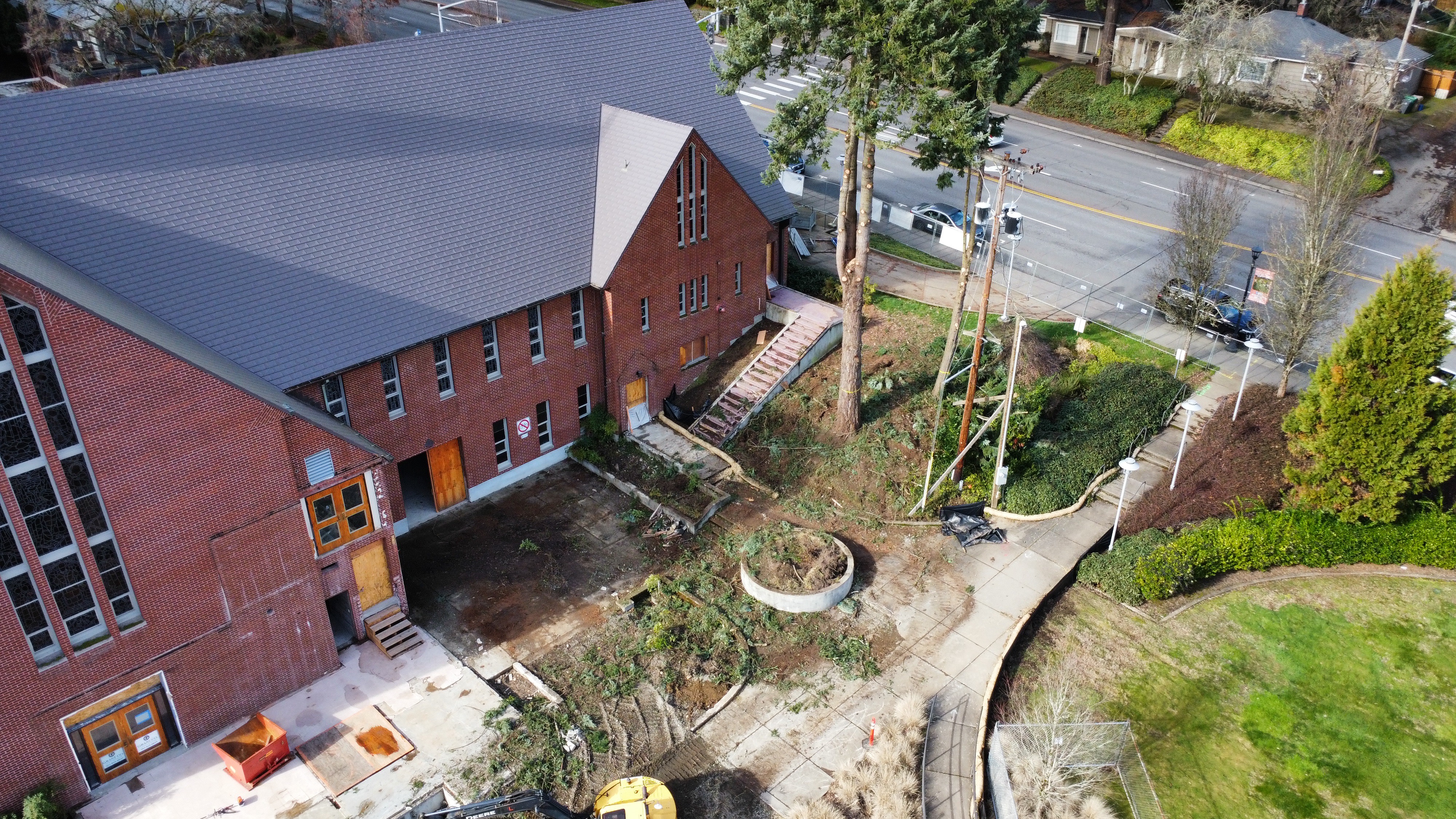 The choir loft and narthex are gone! But this will allow for the planned larger narthex and choir loft, with much better sets of stairs on either side to get up there.