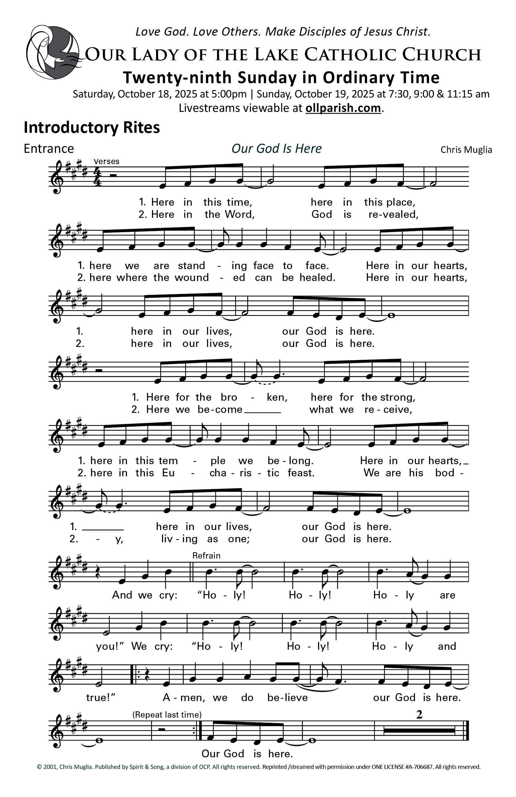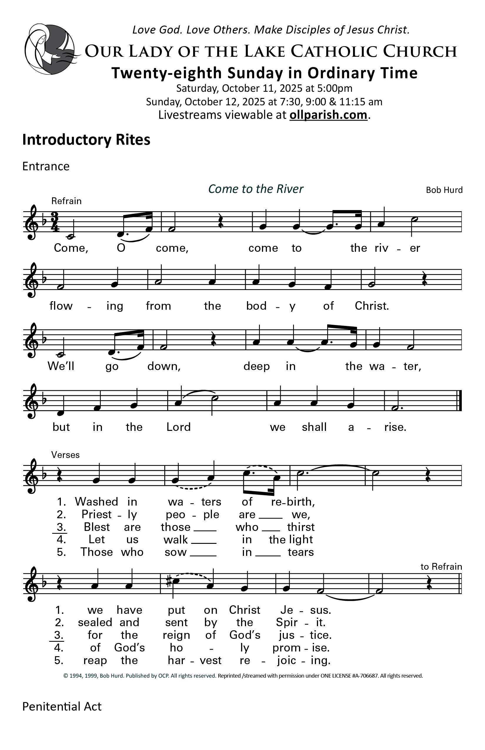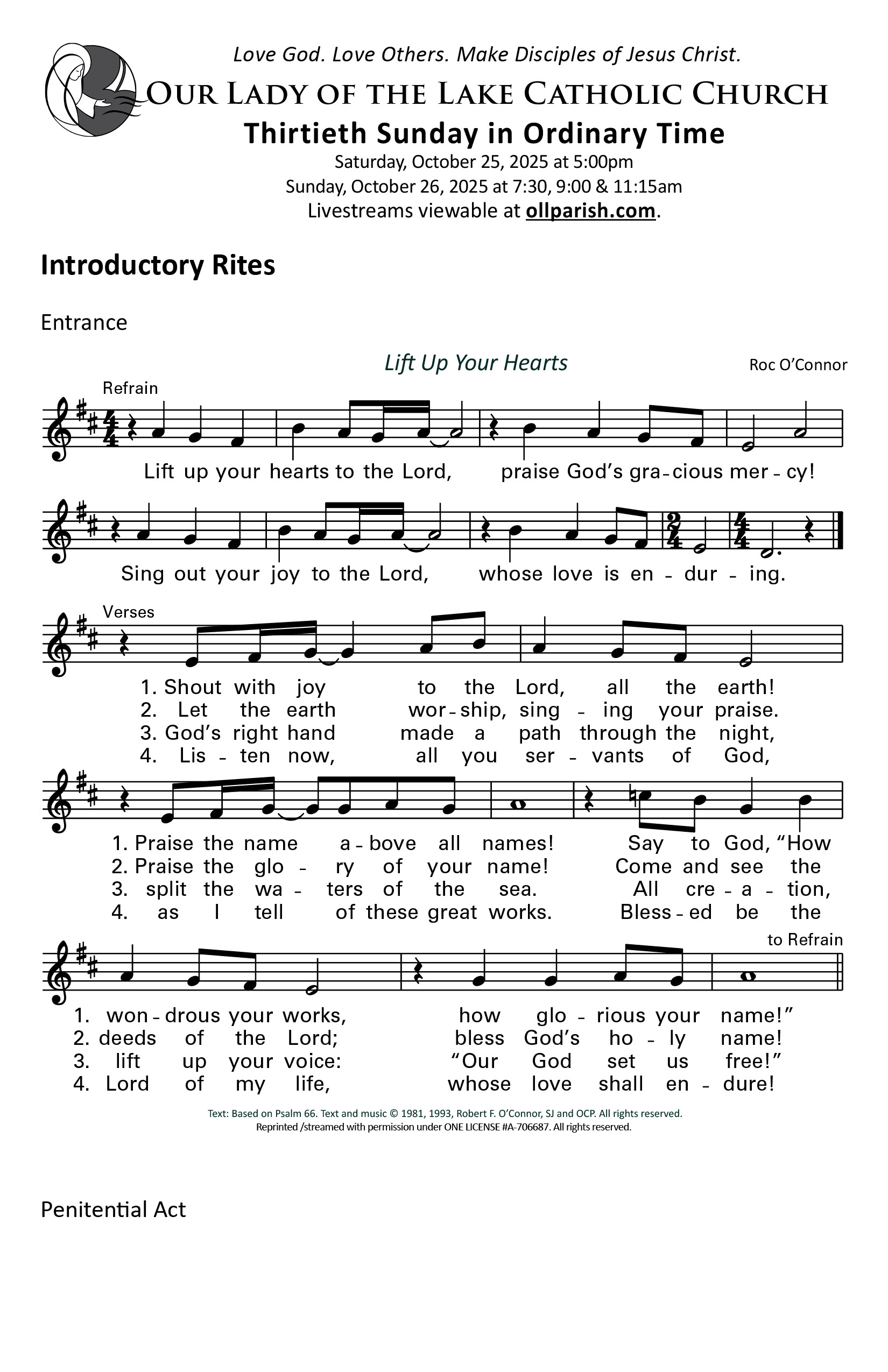 Use the Order of Worship each week to aid your participation at Mass.